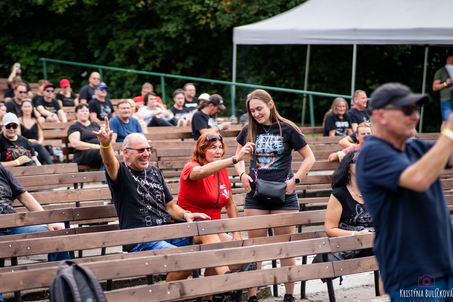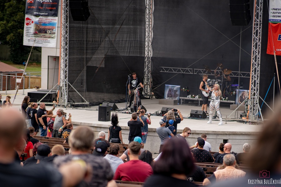 Po dvou letech jsme se vrátili do areálu letního kina Hranice, kde jsme tehdy zažili apokalypsu. V druhém songu setlistu se strhla obrovská vichřice a bouřka, areálem lítaly stánky, vybavení, lehce se zvedala i velká ukotvená montovaná podiová střecha, zhroucení a odfuk altánu backstage chlapi drželi, co to šlo, aby voda nezdecimovala uloženou techniku. Letošní ročník se obešel bez uragánu, sic večer trochu pršelo, my jsme však místo noci teď hráli odpoledne. I přesto je tato akce hned od časných hodin hojně navštěvovaná a rockeři aktivně reagují, což je podstatné pro vzájemný feedback, nasazení a skvělý pocit. Závěrem shrnuto - skvělá akce a nám to zase v původní sestavě výborně hudebně šlape! ♫♪